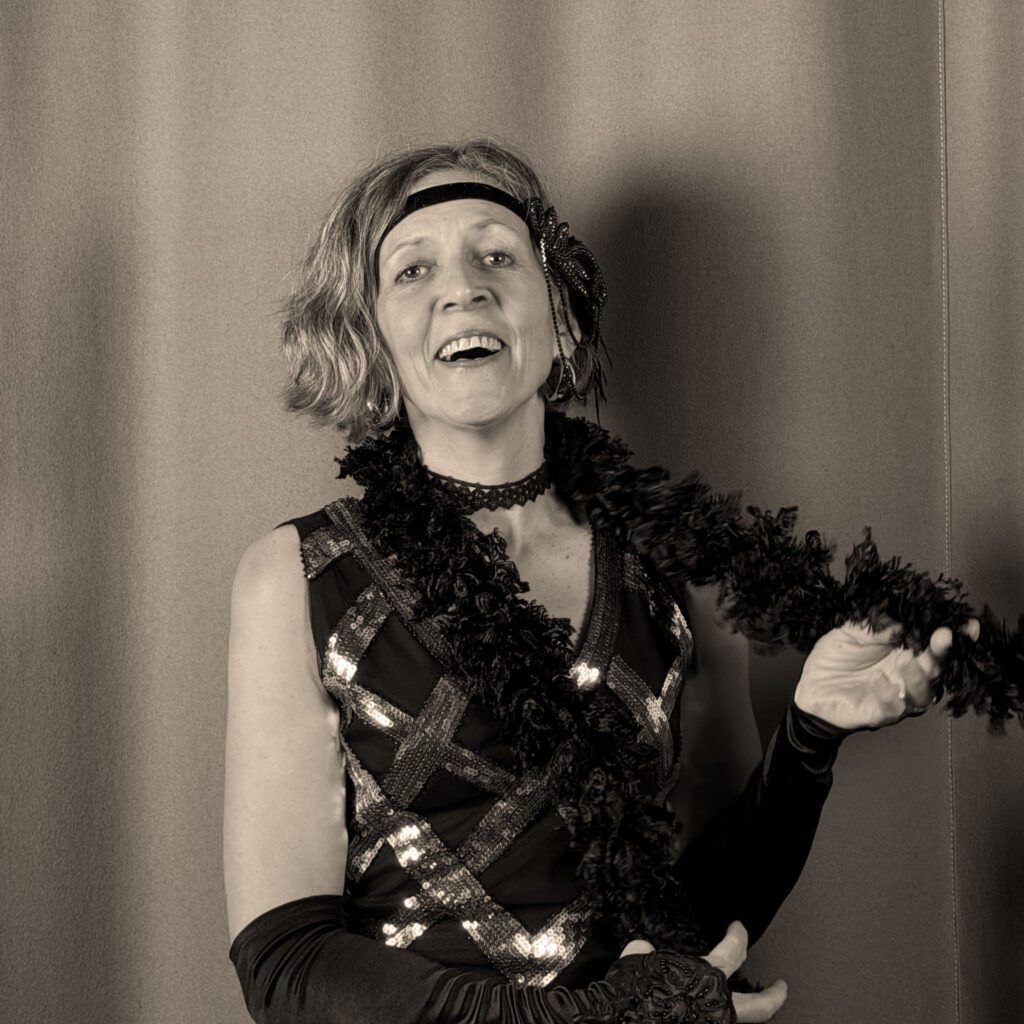 Avec les instrumentistes du Harasse Jazz Band, elle a trouvé le style qui lui correspond et apporte à l’ensemble sa présence et ses belles qualités vocales.
